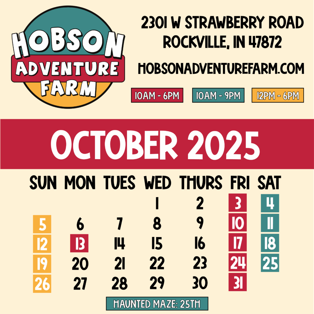 Since 2004, Hobson Adventure Farm in rural Rockville, Indiana has been creating family traditions. From the Fall Festival complete with a corn maze and pumpkin patch to the budding zoo with exotic animals, we invite you to laugh, learn, and enjoy the moments cherished with family and friends at our farm.